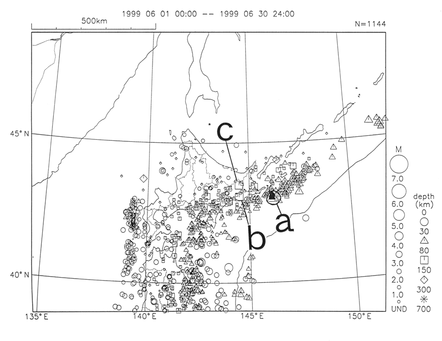 c) An M4.1 earthquake occurred on 13 June in northern Kushiro Administrative District.