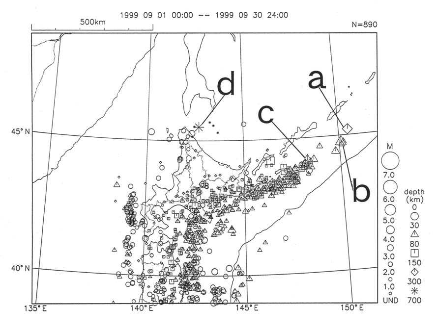 b) An M5.1 earthquake occurred on 21 September in the vicinity of Urup Island [Chishima Islands].