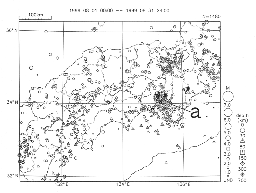 a)和歌山県北部で8/21にM5.4の地震があった(最大震度5弱)。