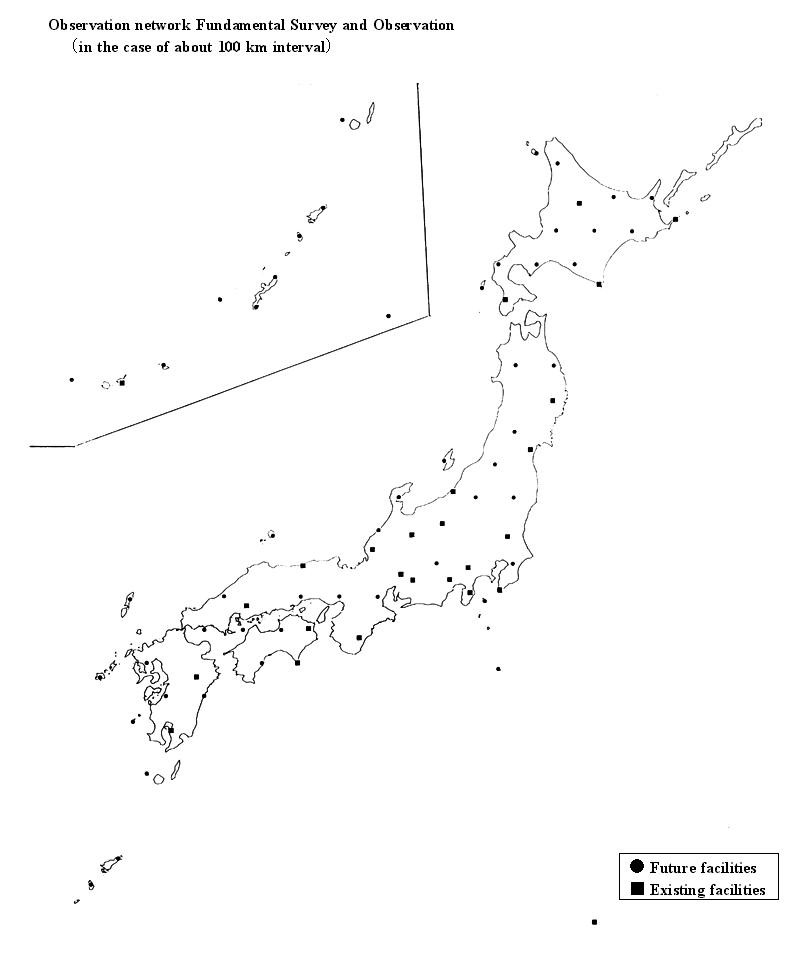 Observation network Fundamental Survey and Observation (in the case of about 100 km interval)