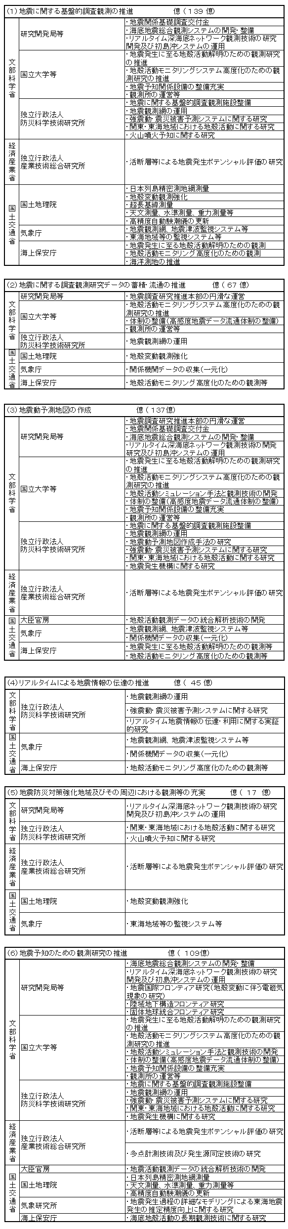 平成13年度地震調査研究関係政府予算概算要求(主要項目)