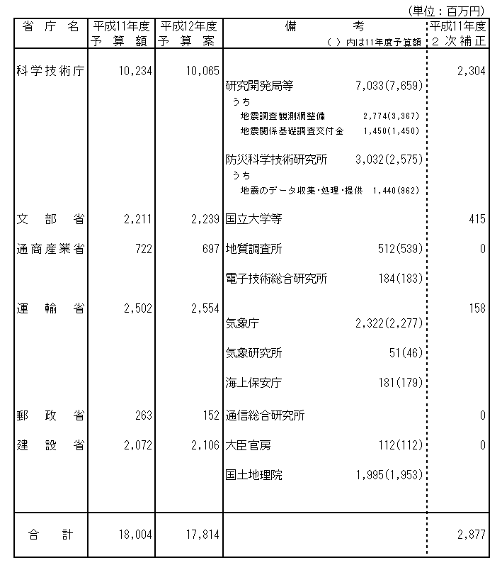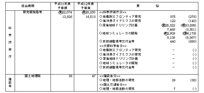 平成12年度地震調査研究関係予算案等について