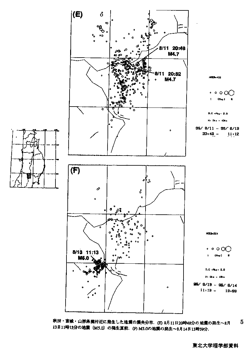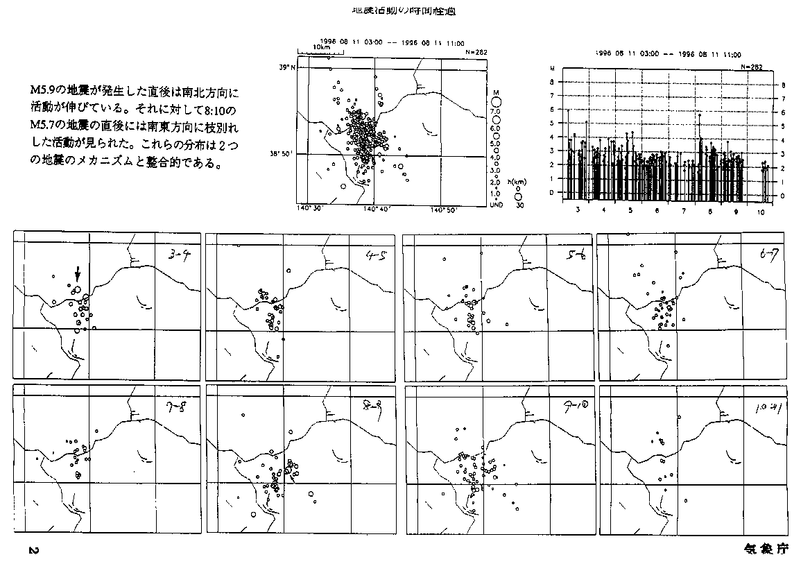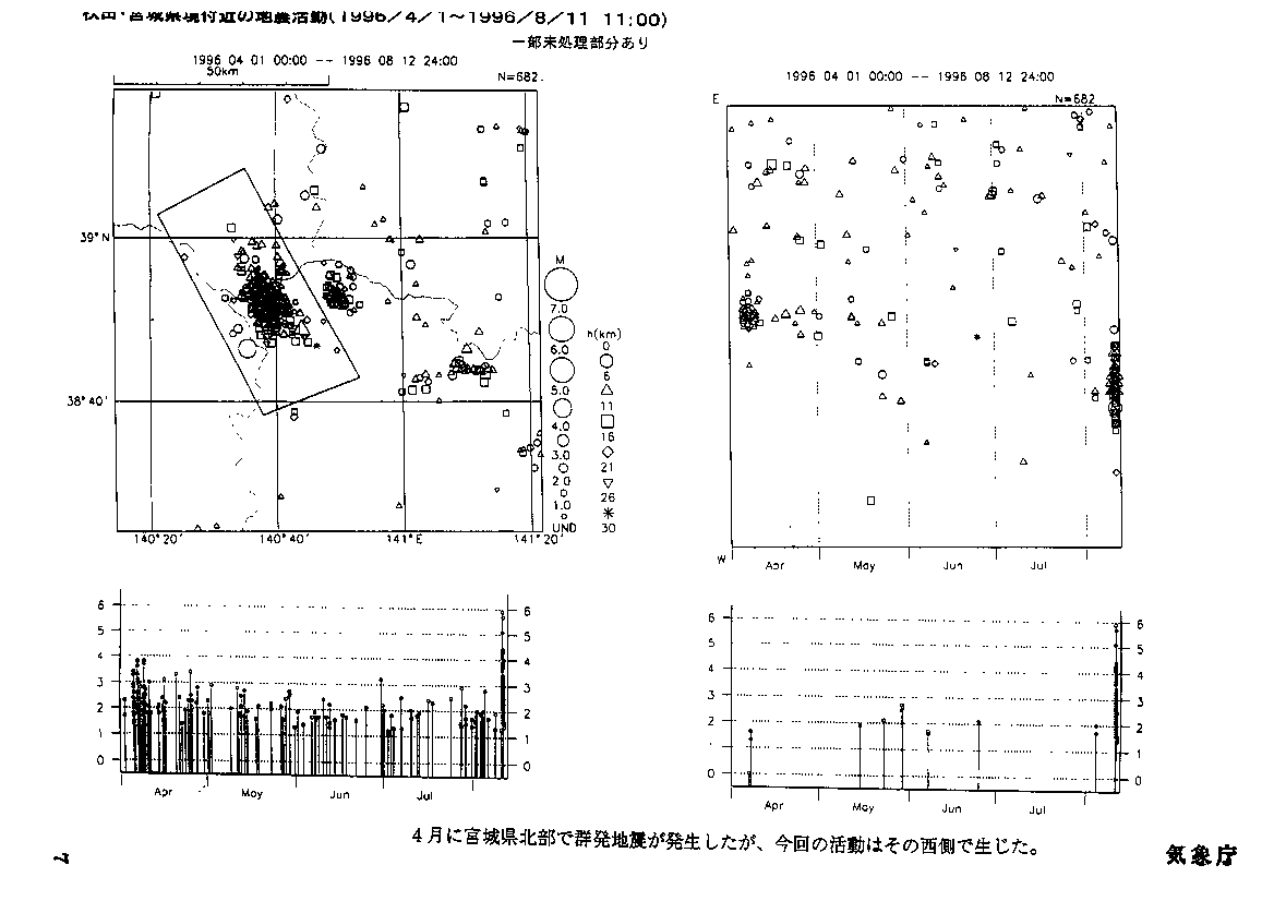 図5秋田・宮城県境付近の地震活動(1996/4/1-8/11 11:00)