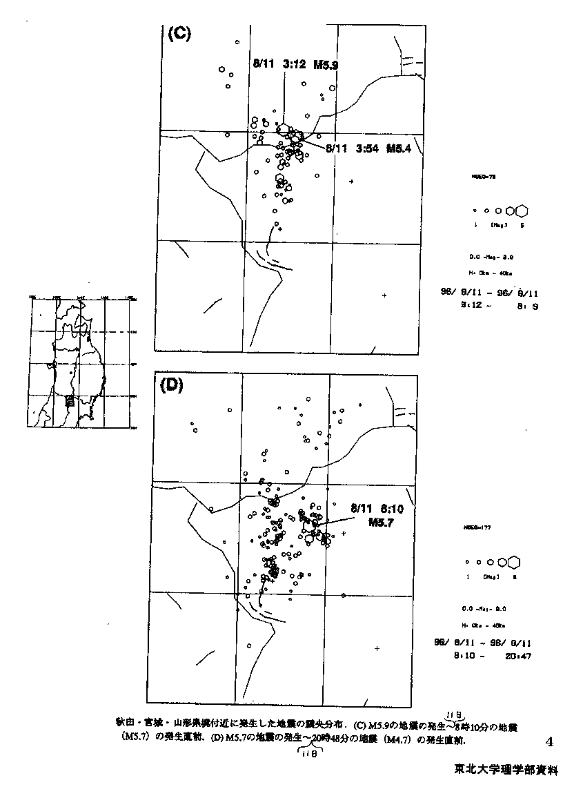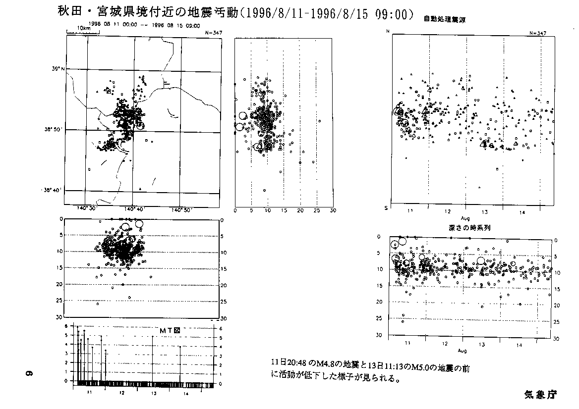 図4秋田・宮城県境付近の地震活動(1996/8/11-8/15 09:00)