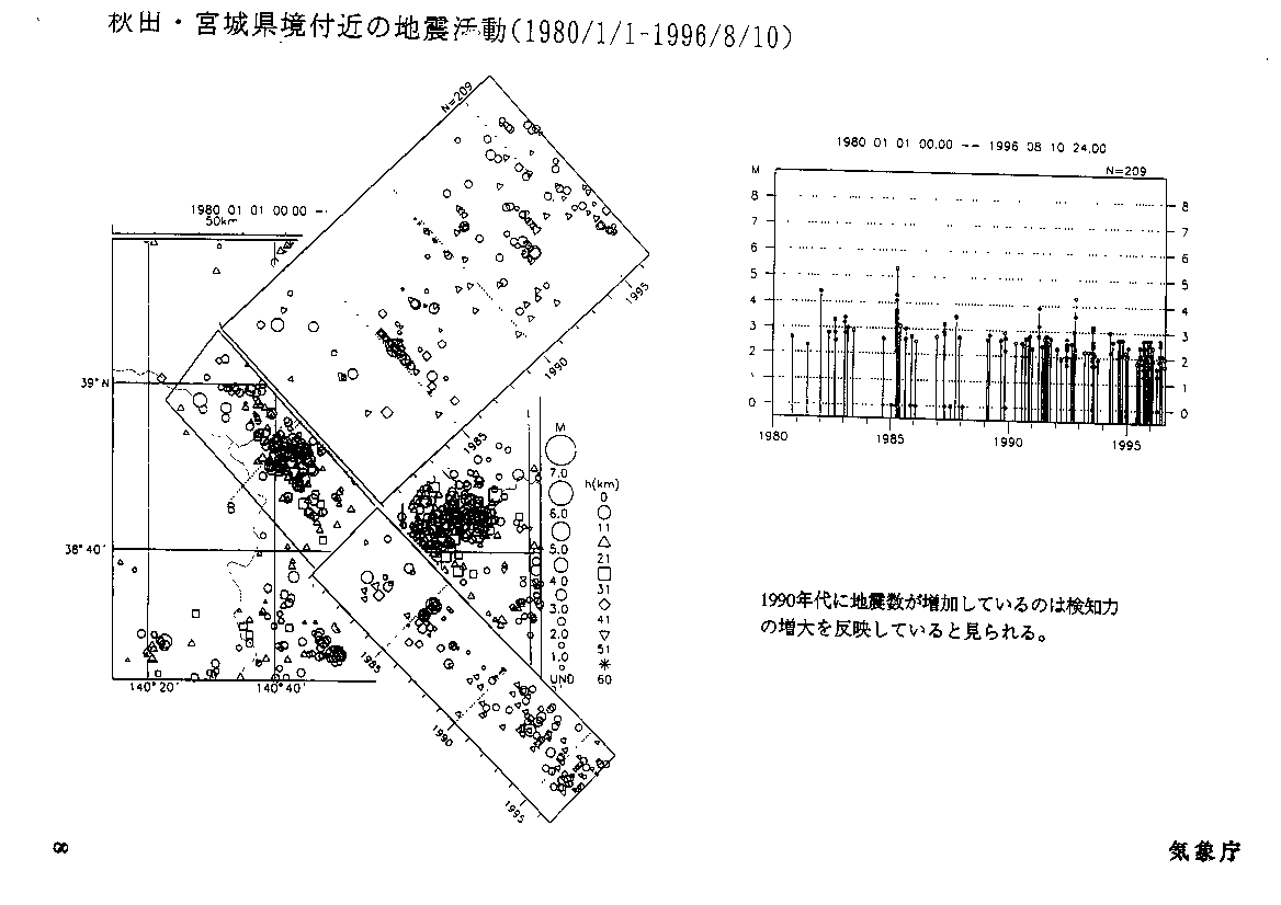 図6秋田・宮城県境付近の地震活動(1980/1/1-1996/8/10)