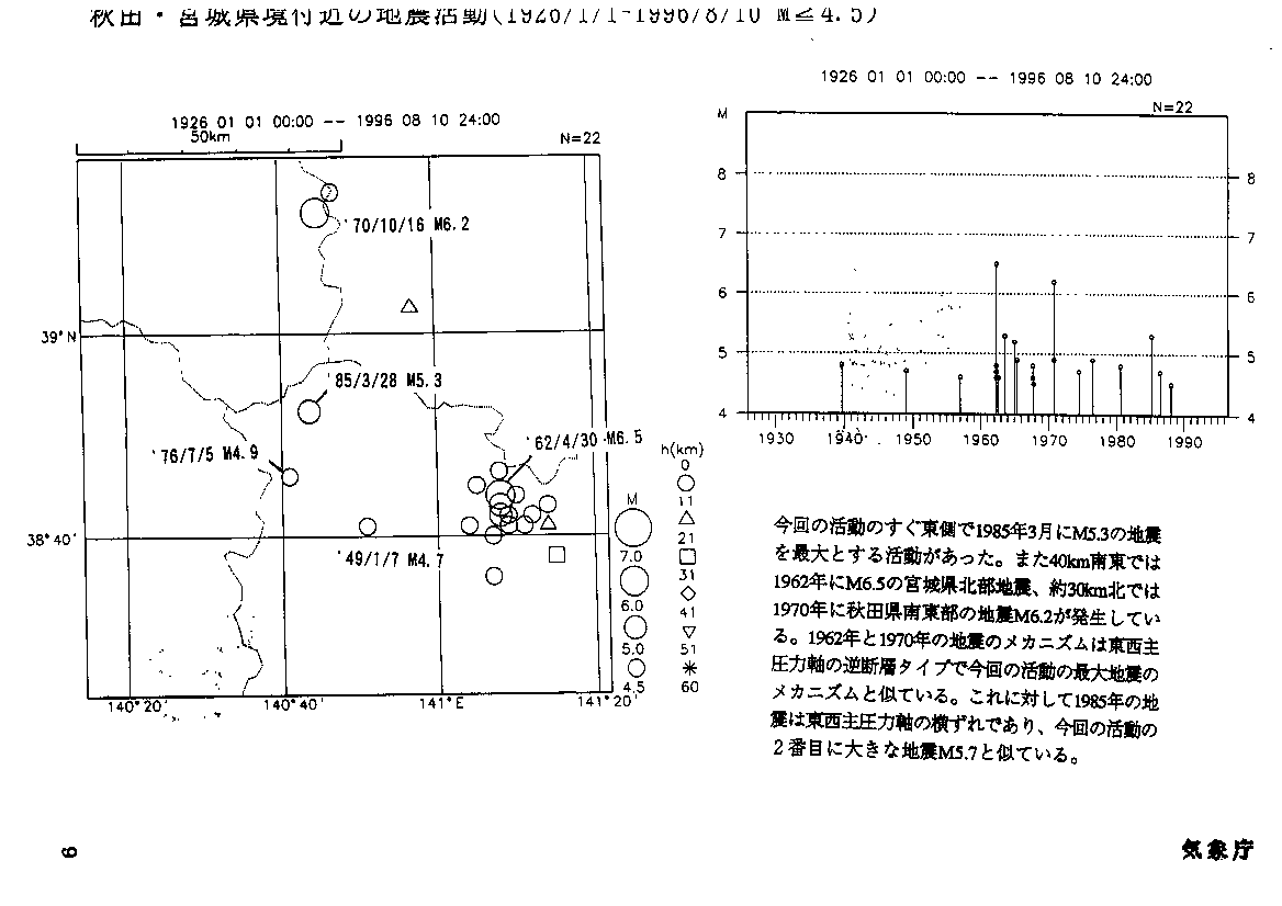 図7秋田・宮城県境付近の地震活動(1926-1996/8/10 M4.5以上)