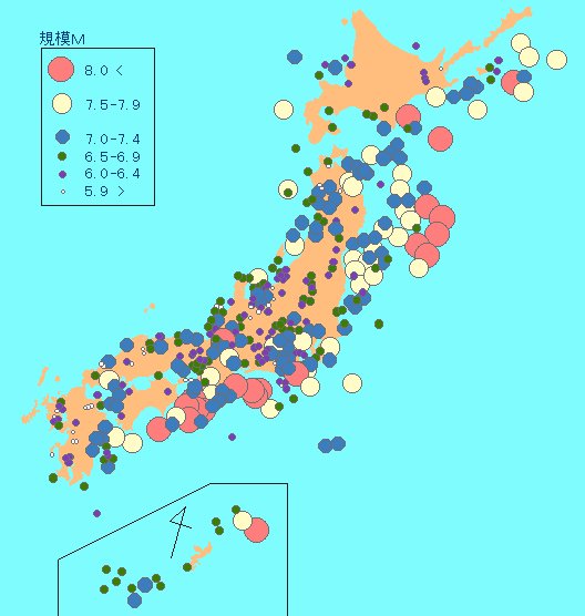 これまで日本で起きた主な被害地震(599年から1995年)