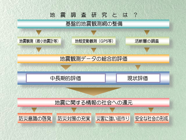 従来の推進体制では、地震調査研究の計画立案、実行、評価の一元化が不十 分でしたので、現在は下図のような推進体制をとっています。